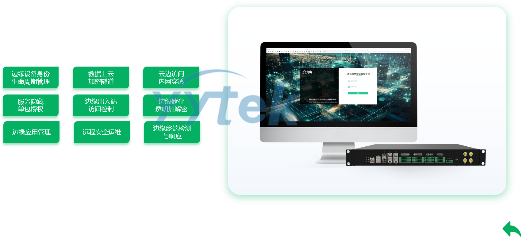 系統(tǒng)基于零信任理念,采用SDP軟件定義邊界網(wǎng)絡(luò)安全架構(gòu),為基于云、邊、端三級分層模型的物聯(lián)網(wǎng)系統(tǒng),提供增強身份認(rèn)證和授權(quán)、設(shè)備接入安全、網(wǎng)絡(luò)訪問與傳輸安全、數(shù)據(jù)存儲安全、安全應(yīng)用倉庫、安全運維等多維度防護。