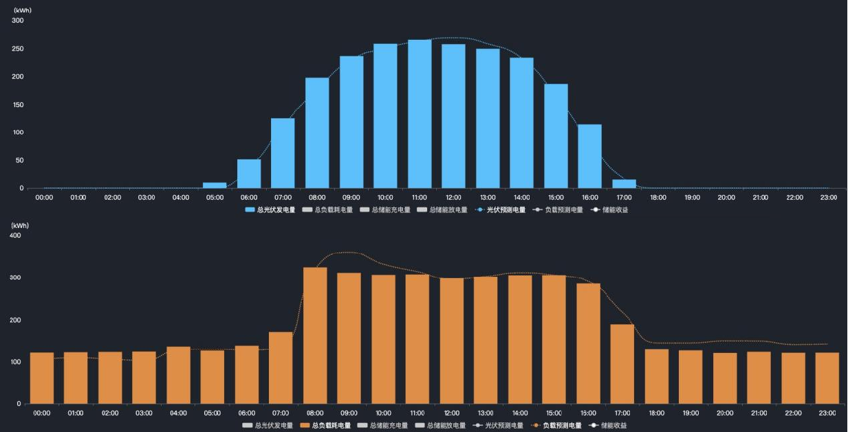 通過開展基于時間卷積神經(jīng)網(wǎng)絡(luò)(TCN)結(jié)合長度記憶時間網(wǎng)絡(luò)(LSTM)的光伏發(fā)電出力和負載曲線預(yù)測方法等研究,實現(xiàn)提前預(yù)測光伏的發(fā)電量和負載曲線,從而根據(jù)儲能的配儲容量,結(jié)合不同時段的電價來自動動態(tài)制定系統(tǒng)充放電策略,保證經(jīng)濟效益的最大化。光伏預(yù)測平均準(zhǔn)確率≥80%,負載預(yù)測平均準(zhǔn)確率≥90%,光伏預(yù)測最小周期24小時。