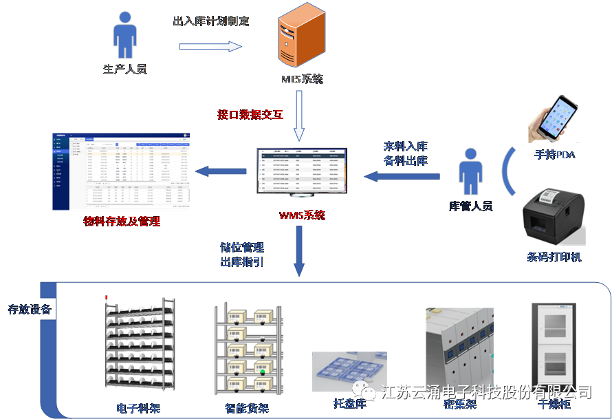 ? ? ? 此外,云涌科技擁有自己的倉庫管理設(shè)備,通過與WMS系統(tǒng)軟件相結(jié)合,可以實現(xiàn)整個倉儲管理流程: